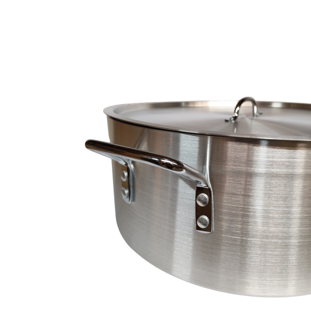 Esta arrocera Multimenaje de 44 x 18,5 cm y 30 litros está diseñada para grandes producciones. El aluminio asegura una cocción pareja y eficiente. Su capacidad facilita trabajar grandes cantidades sin perder textura. Ideal para cocinas profesionales que requieren alto rendimiento.