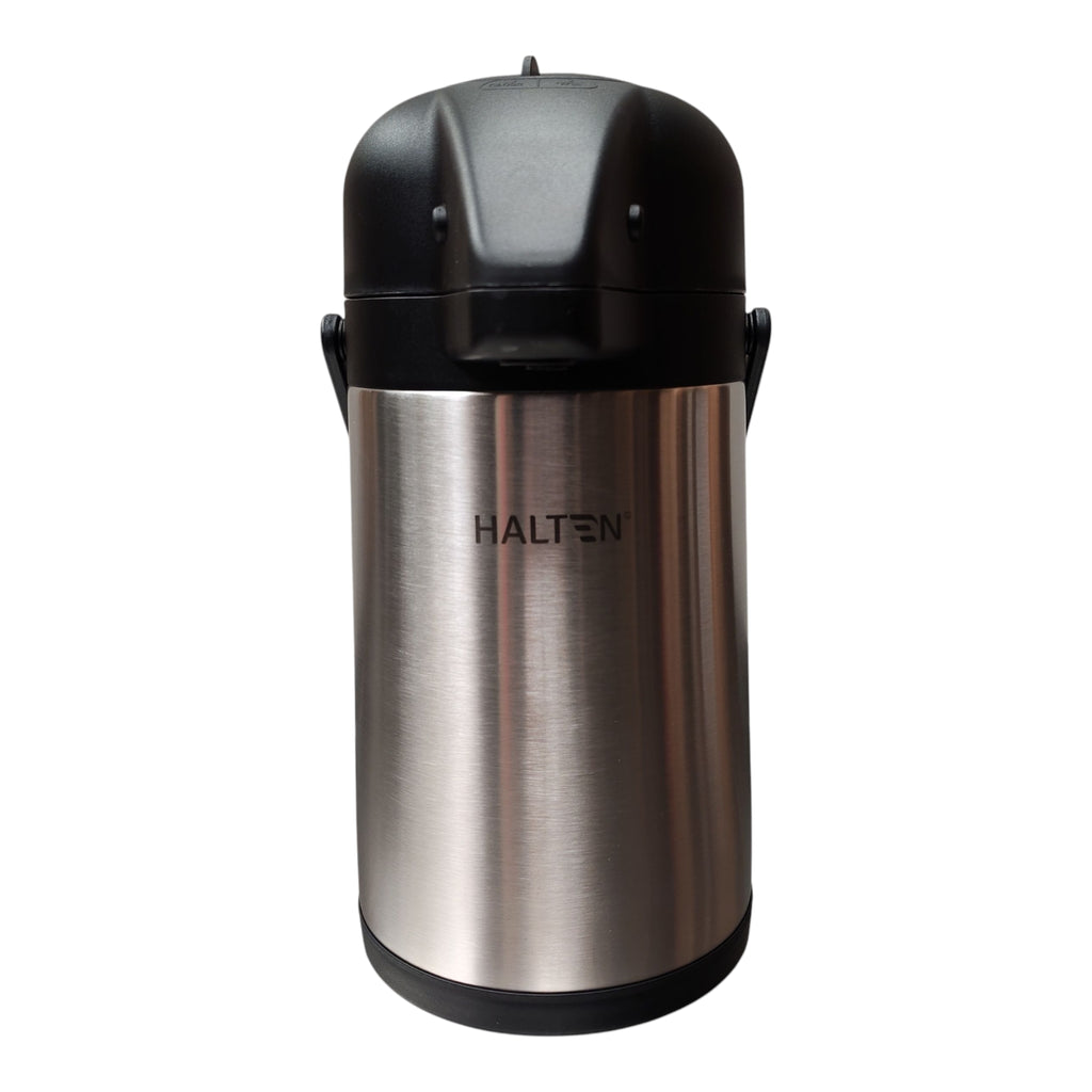 Termo sifón de acero inoxidable con capacidad de 1,9 litros. Mantiene bebidas calientes o frías por varias horas gracias a su doble pared aislante. Incluye mecanismo de bombeo para servir de manera práctica y segura sin levantar el termo. Ideal para oficinas, eventos o el hogar, combina gran capacidad con resistencia y diseño moderno.