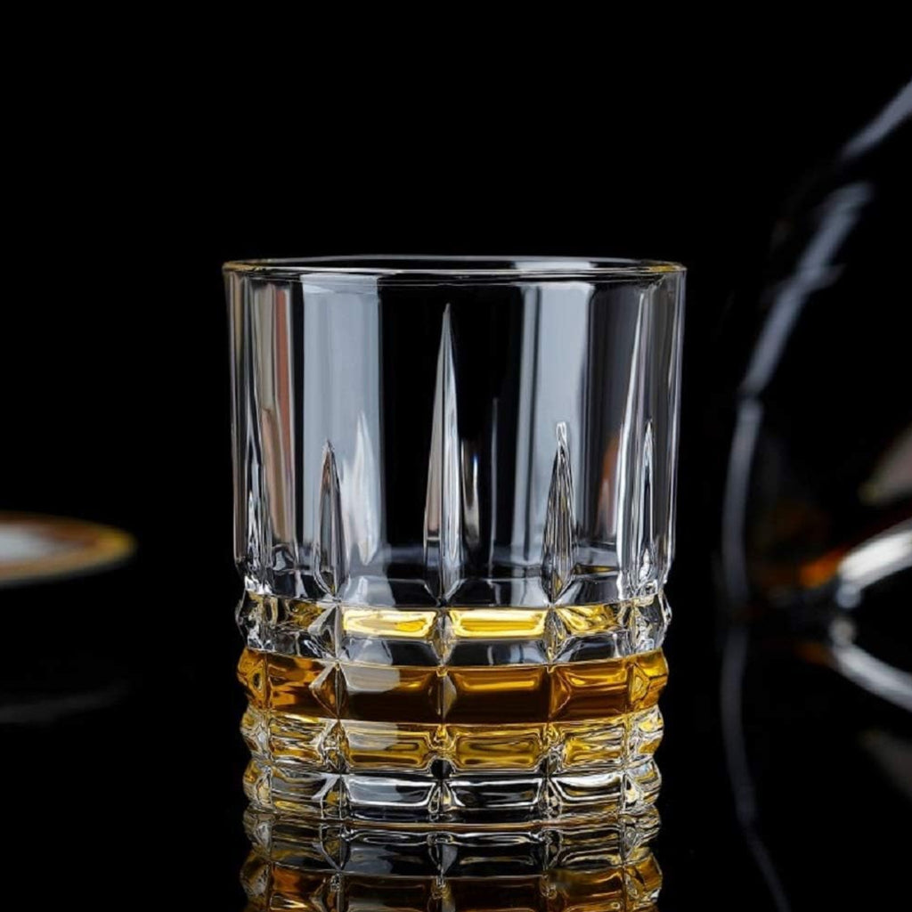 Vaso Rock Rollins de vidrio, capacidad de 330 ml. Ideal para whisky, cócteles o bebidas cortas. Estilo clásico y resistente.